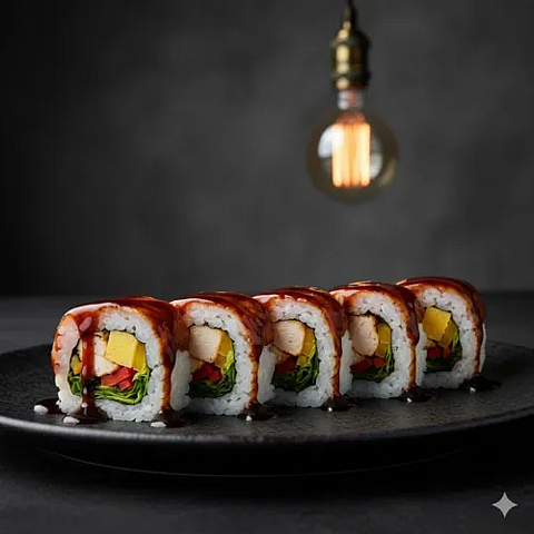 Истинное гастрономическое удовольствие и идеальный баланс вкусов. Сладость спелого тропического манго подчеркивает глубокий, подкопченный вкус премиального угря. Густой соус унаги объединяет эти компоненты в экзотическую симфонию, которая запомнится навсегда.