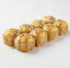 Нежнейшая крабовая начинка (сурими) в сочетании с пикантным соусом спайс и свежим зеленым луком. Плотная сырная шапка, подрумяненная до золотистого цвета, и капли соуса унаги создают неповторимый аромат и сочный, насыщенный вкус. Идеальный выбор для тех, кто любит классику в новом, горячем прочтении. Состав: Нежный сурими (краб. п/ф), соус спайс, зеленый лучок, рис, нори. Топпинг: Фирменная сырная шапка, соус унаги.