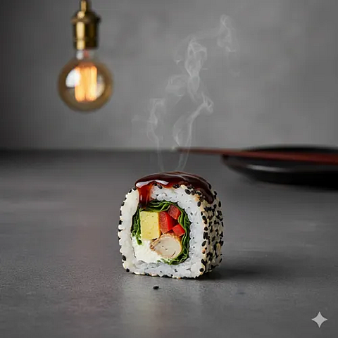 Нежное филе цыпленка в сочетании со сладким болгарским перцем и сливочным сыром. Запекается под пышной сырной шапкой, которая запечатывает сок внутри ролла. Идеальный выбор для тех, кто ценит понятный, насыщенный вкус. Состав: Сочное филе курицы, свежий болгарский перец, сливочный сыр, рис, нори. Топпинг: Фирменная сырная шапка, подрумяненная в печи.